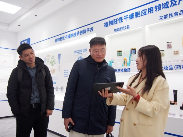 在财务中心认真人刘子豪的陪同下,,,,,来访团一行旅行了集团声誉墙与展厅,,,,,实地考察了尊时凯龙集团的研发中心,,,,,先后旅行了植物胚性干细胞库、植物胚性干细胞种苗工程研究室、功效基因研究室、人工种子研究室、干细胞饮品研发实验室、医学磨练实验室、双PCR实验室等。。。。。